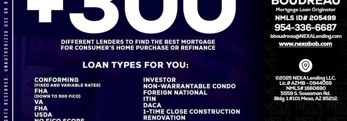 Hi, my name is Bob Boudreau. I’m a Loan Officer with NEXA Lending LLC., offering personalized mortgage solutions, fast customized quotes, great rates and service with integrity.