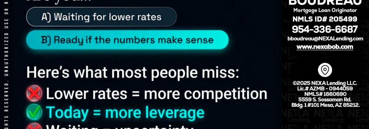 Hi, my name is Bob Boudreau. I’m a Loan Officer with NEXA Lending LLC., offering personalized mortgage solutions, fast customized quotes, great rates and service with integrity.